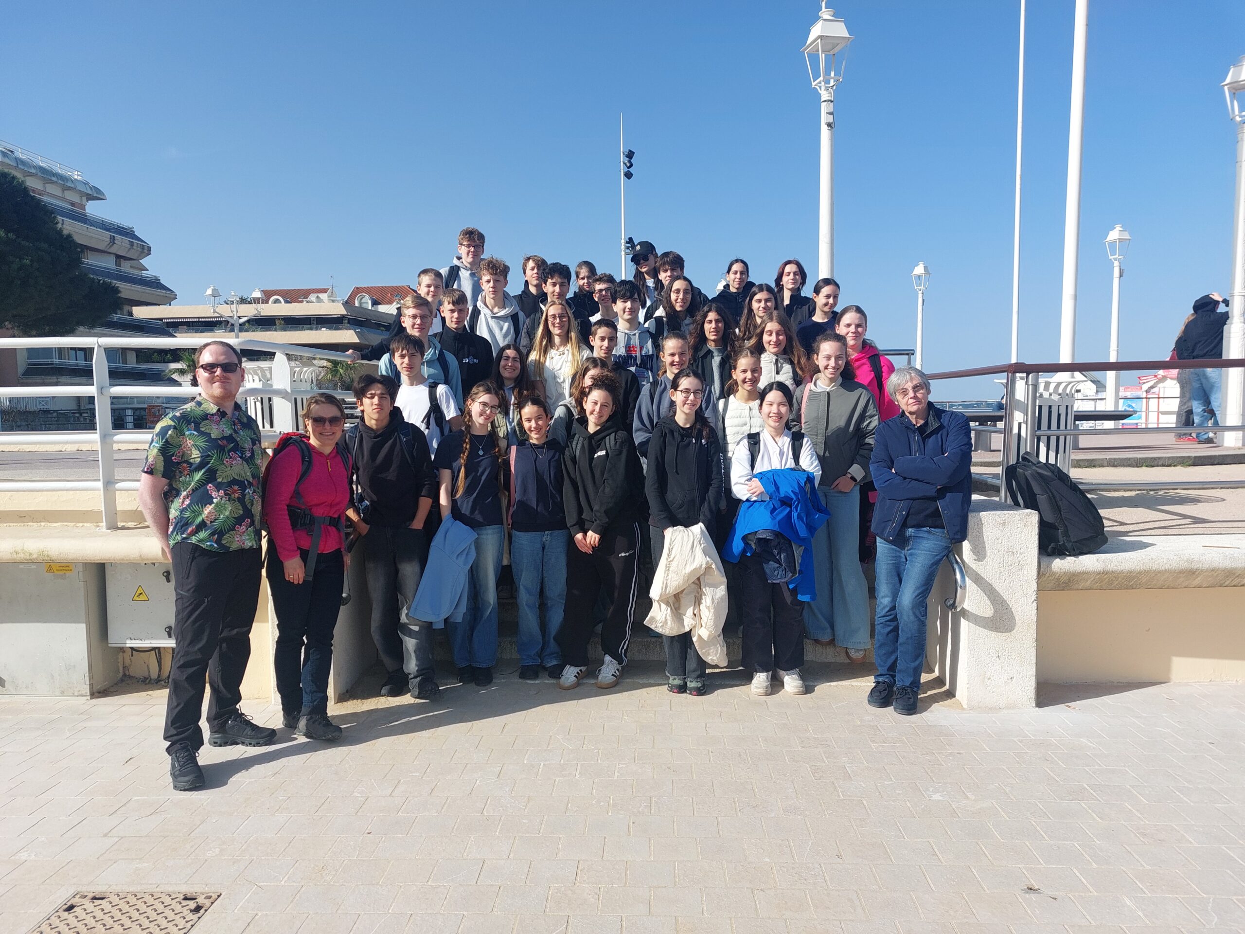 Am 23.02.2026 startete eine 20köpfige Truppe des ISGY mit dem Zug Richtung Bordeaux, wo sie im Rahmen unseres Austauschprojekts eine Woche eintauchen durften in den französischen Alltag ihrer Gastfamilien. Nach einer etwas abenteuerlichen Anreise kamen wir müde, aber aufgeregt an und wurden sehr freundlich an der Schule in Mérignac empfangen. Wir hatten eine Woche lang traumhaftes Frühlingswetter und besichtigten viele schöne Orte: die größte Wanderdüne Europas, die Dune de Pilat am Atlantik, die schöne Küstenstadt Arcachon und natürlich alle wichtigen Spots in Bordeaux. Zwei Vormittage verbrachten die deutschen Schülerinnen und Schüler natürlich auch in der Schule. Dort wurde ihnen schnell klar, wie privilegiert sie mit unserem schönen ISGY-Schulgebäude sind und wie angenehm es ist, nicht jeden Tag bis 17 Uhr Unterricht zu haben. Spannend fanden die deutschen Schüler auch die Essgewohnheiten ihrer französischen Gastgeber und die teils recht weiten Schulwege ihrer Correspondants. Die Stimmung war stets gut und die französischen und deutschen Schüler waren auch immer wieder in binationalen Grüppchen zu sehen – genauso soll es auch sein! Nach einer Woche ging es dann – diesmal mit den Franzosen im Gepäck und DB-bedingt wieder nicht ganz ohne Komplikationen – zurück nach Ismaning. Hier schloss sich eine weitere tolle Woche an, in der sich die Austauschpartner noch besser kennenlernen konnten und einige schöne Erlebnisse teilen durften. Vive l’amitié franco-allemande!